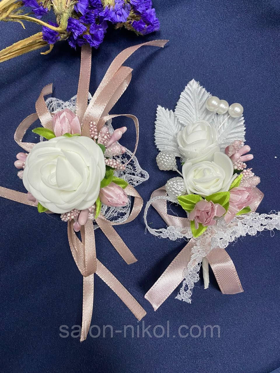 Весільний набір для свідків в пудровому кольорі (бутоньєрка+браслет)